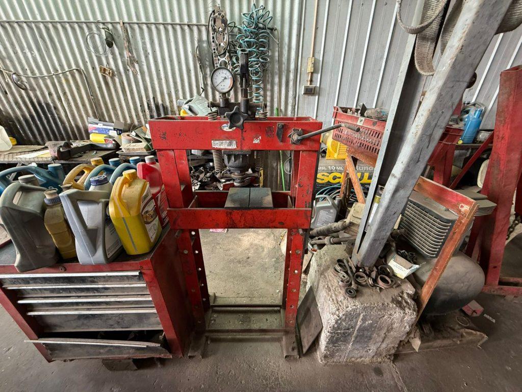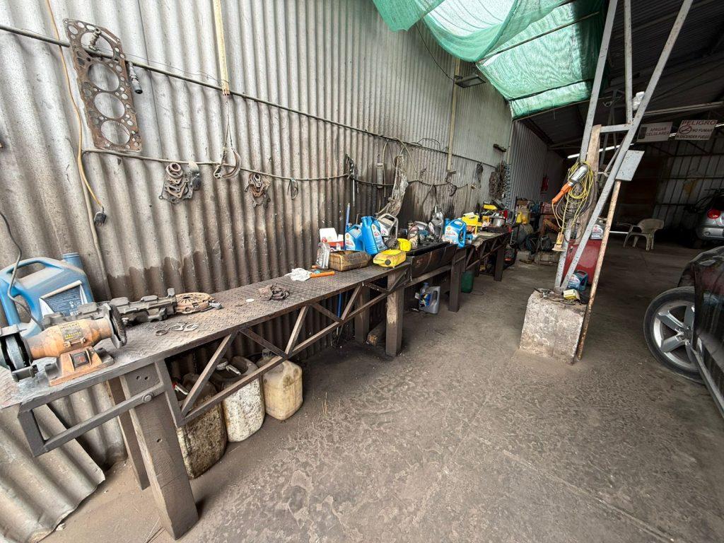 Taller amplio con 1 oficina, 2 baños, 1 galpón abierto, estacionamiento para 15 vehículos, 2 pozos mecánicos, habilitado con compresor 175 litros, 1 prensa para rodamiento.
